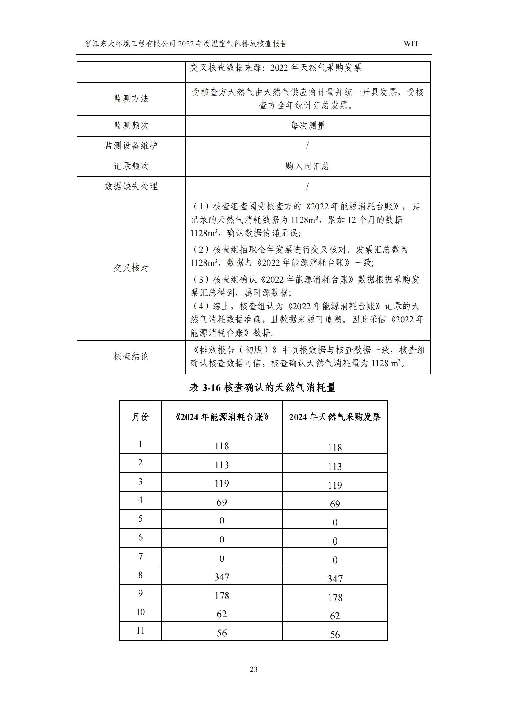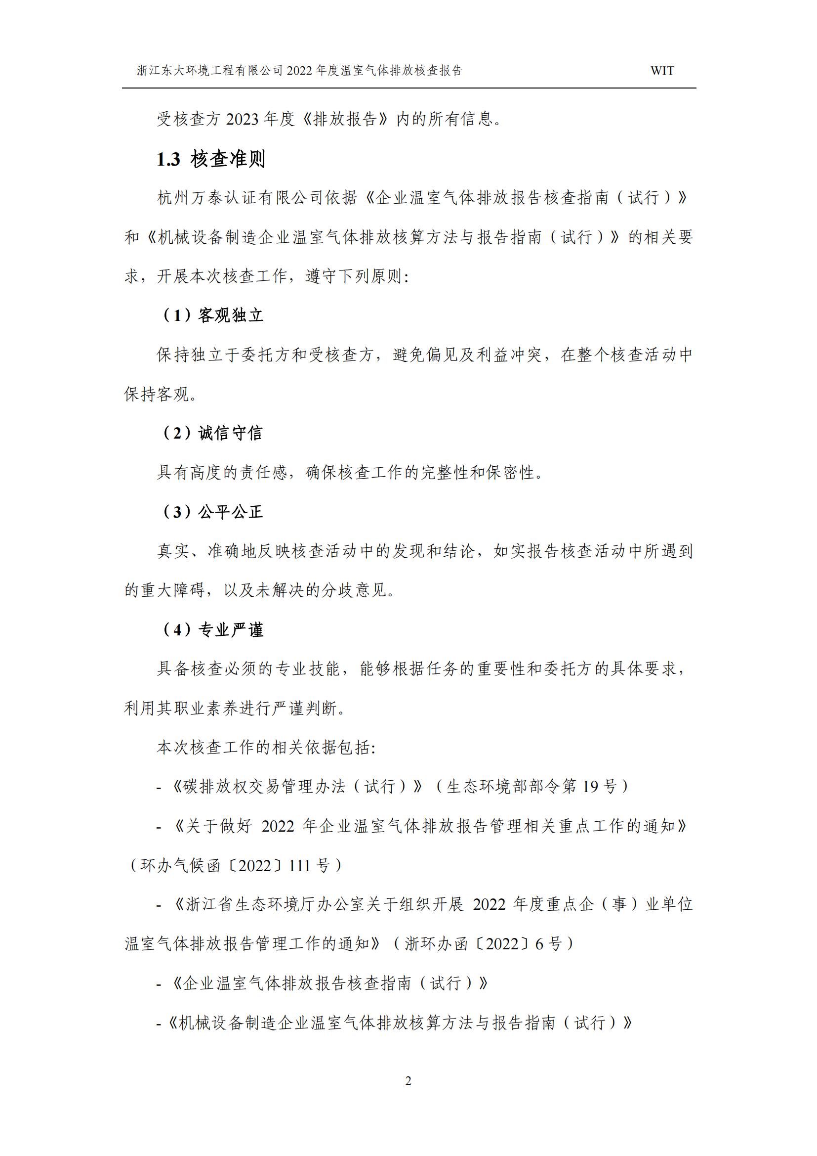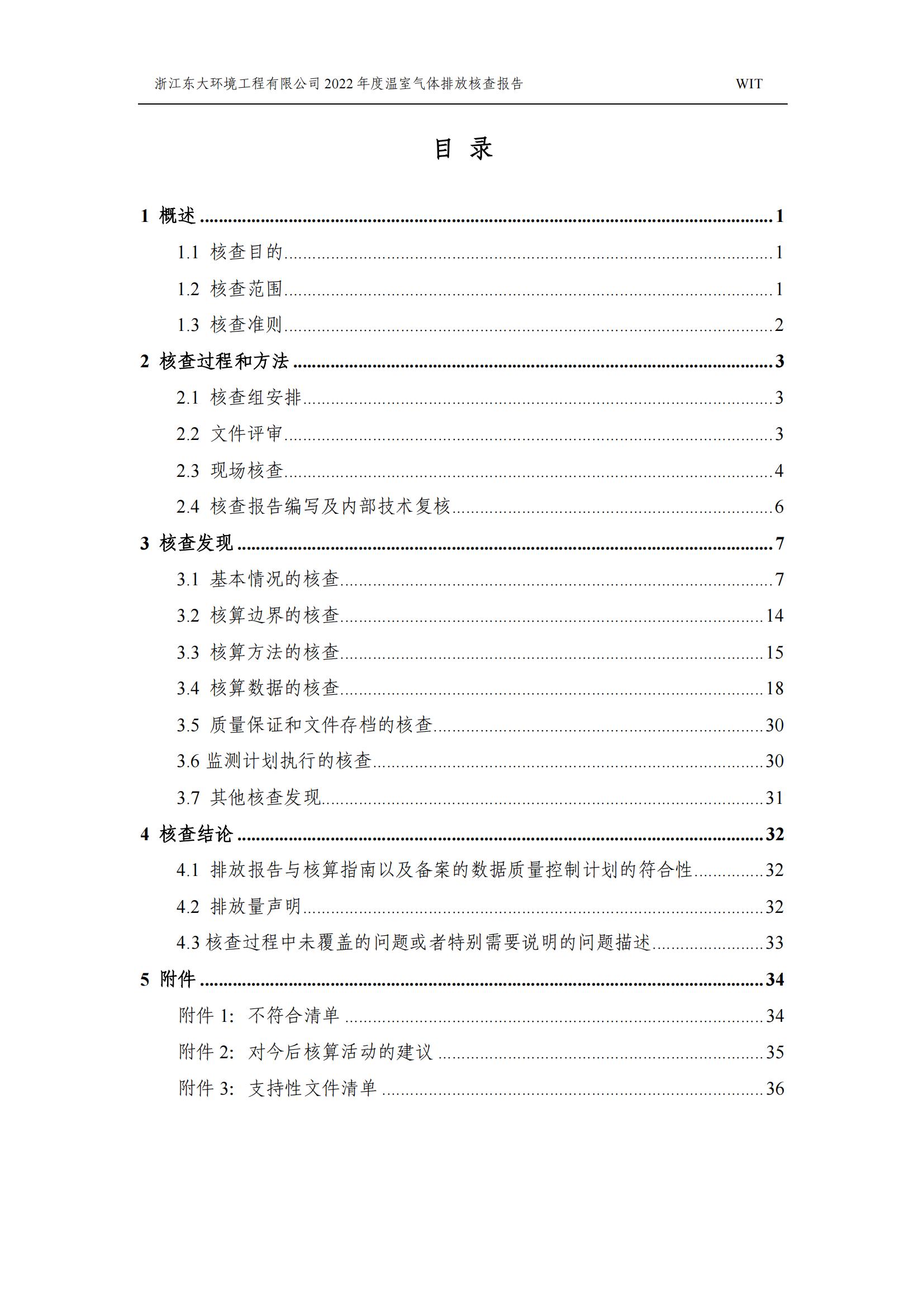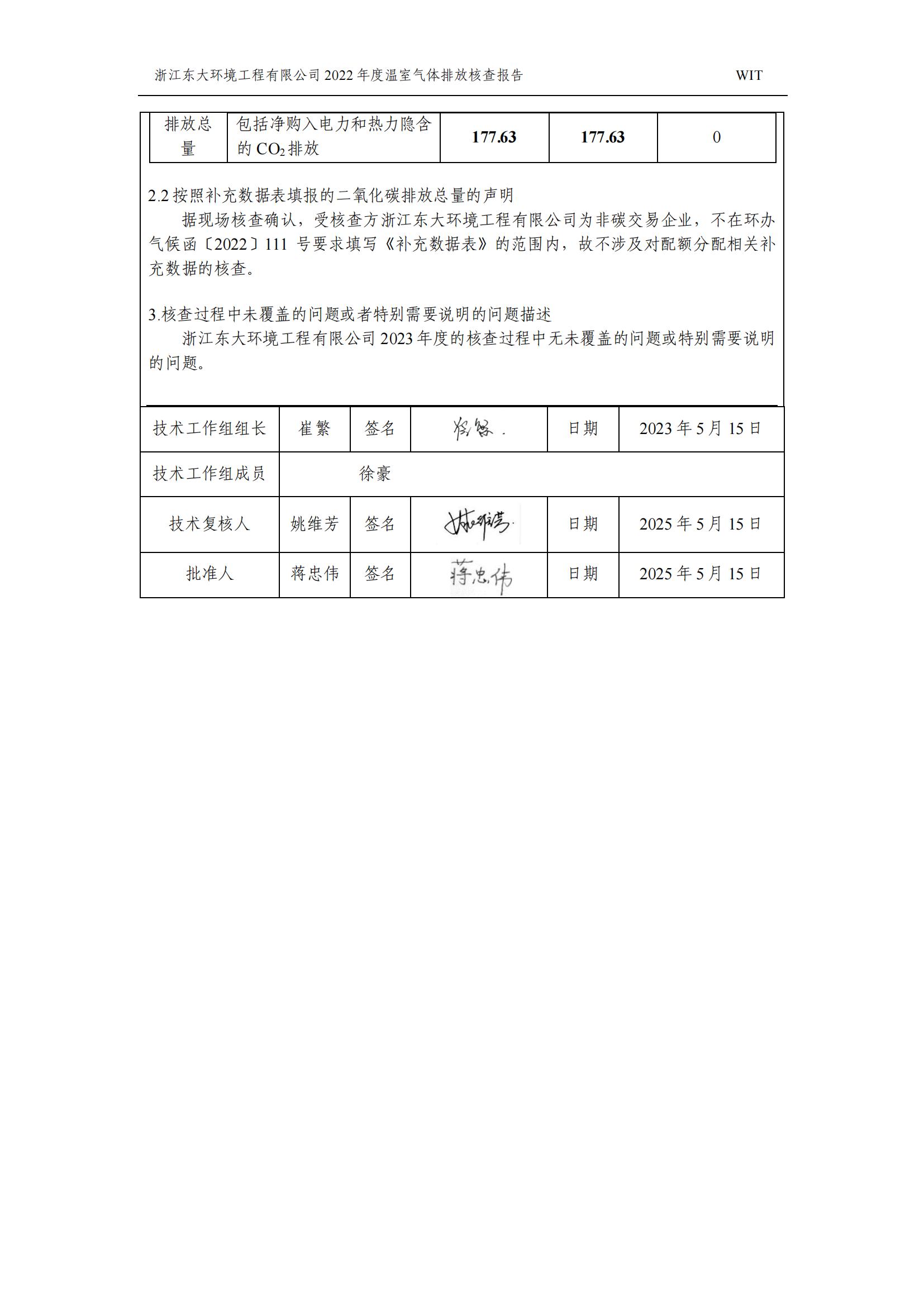 浙江東大環(huán)境工程有限公司2022年溫室氣體排放核查報告