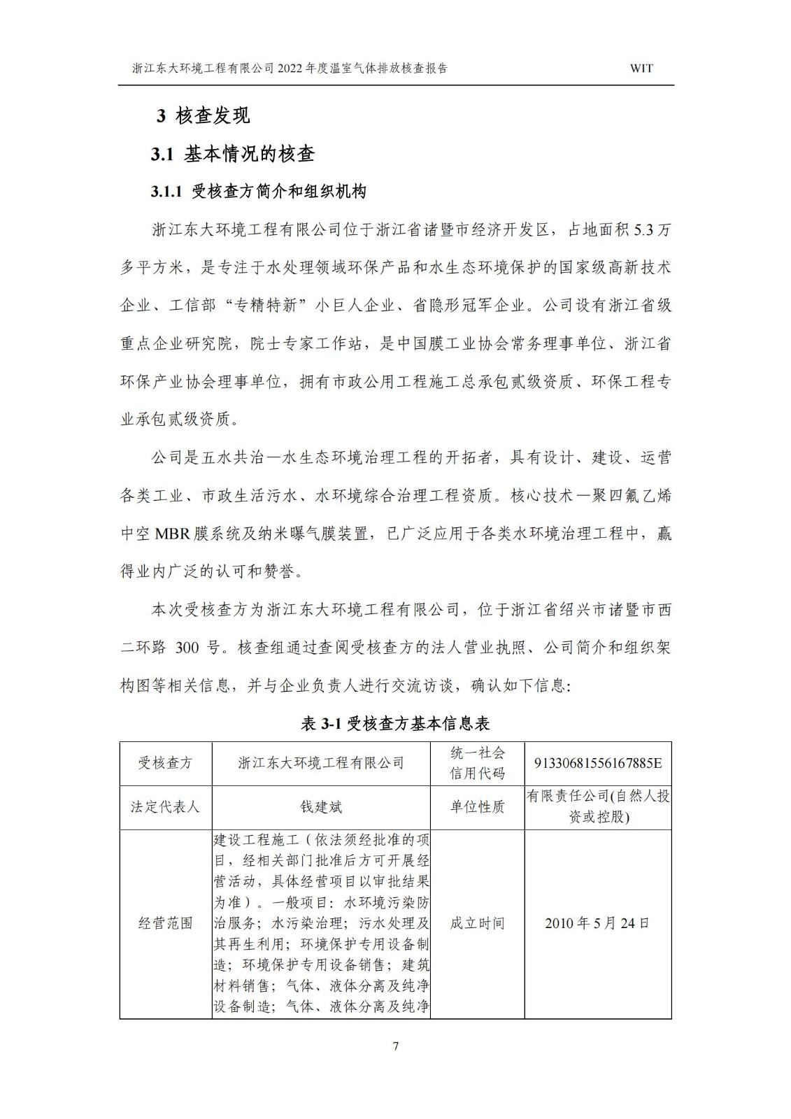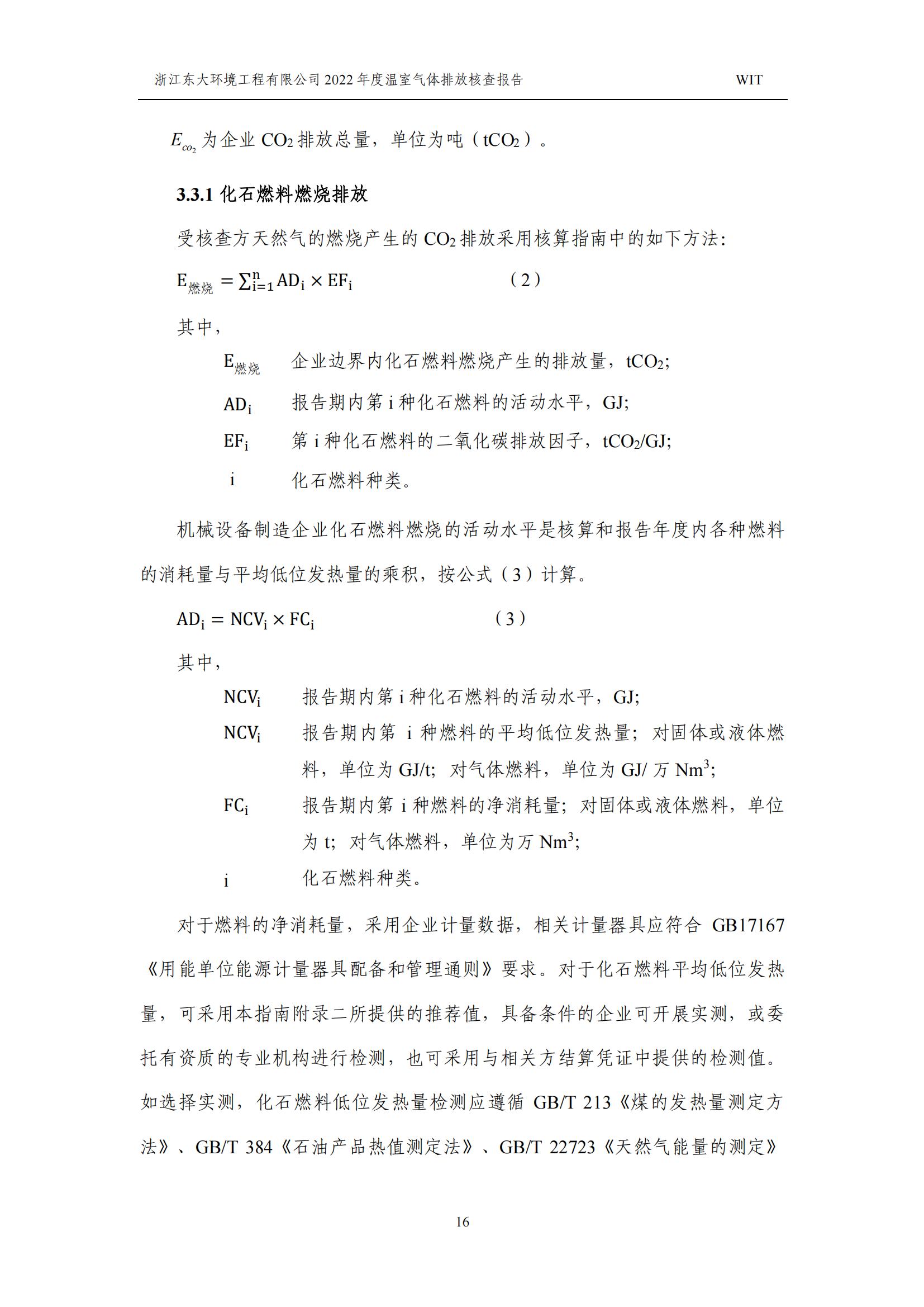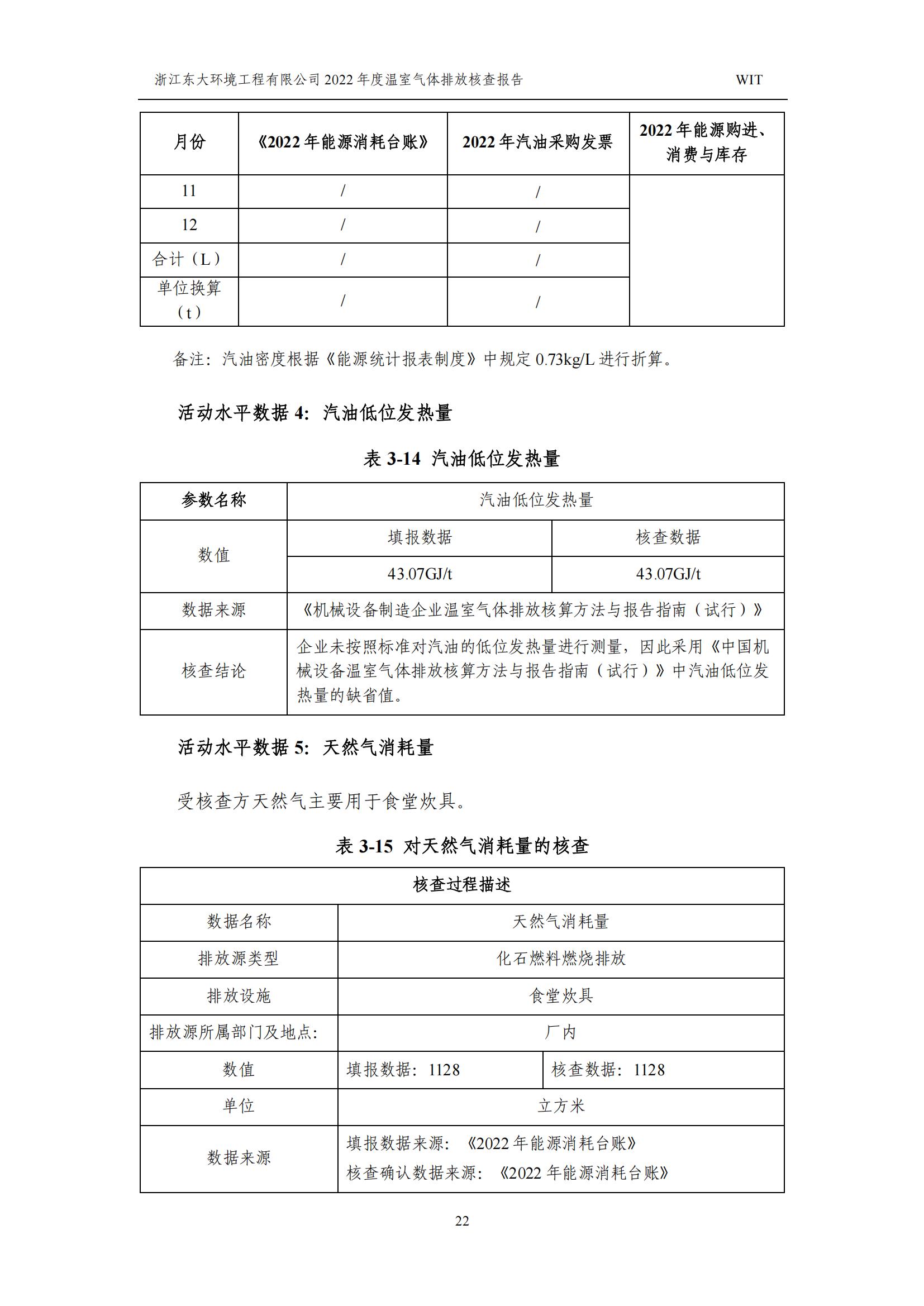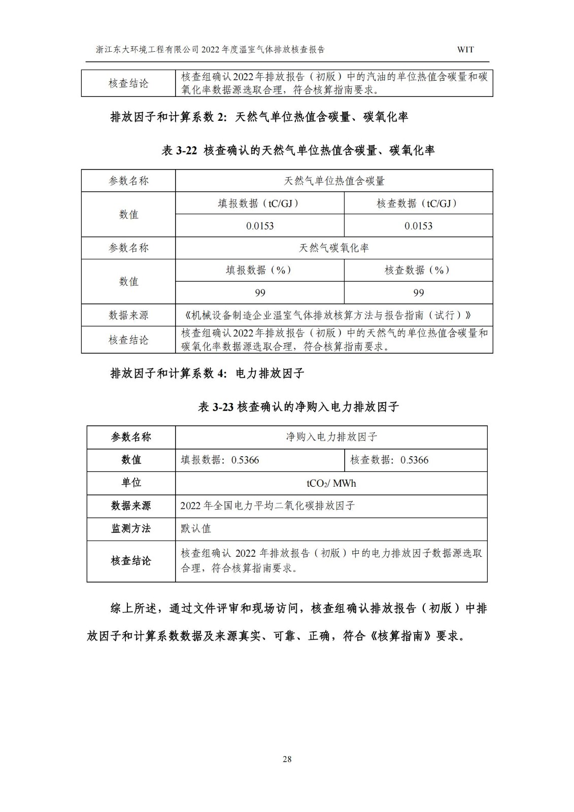浙江東大環(huán)境工程有限公司2022年溫室氣體排放核查報告