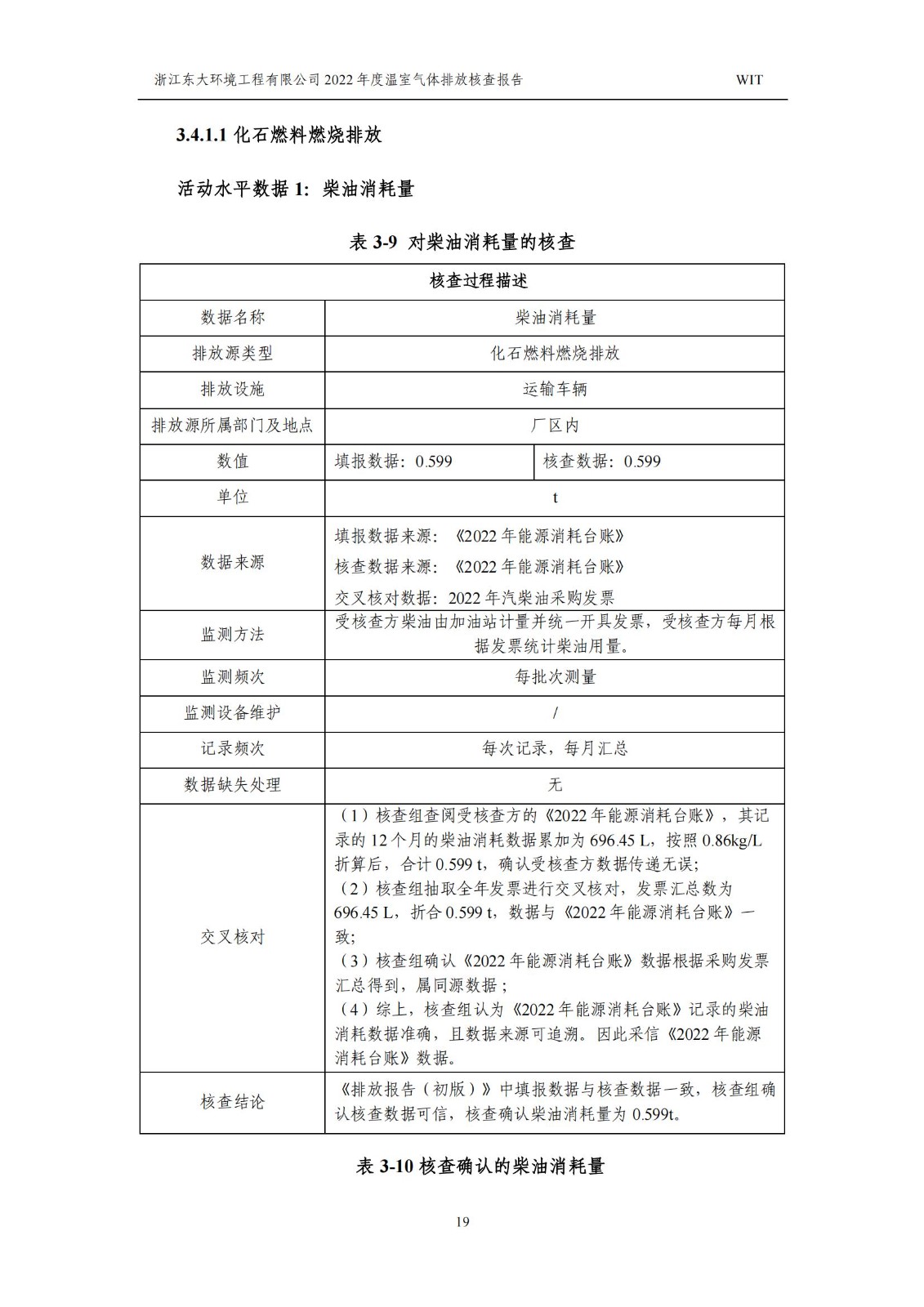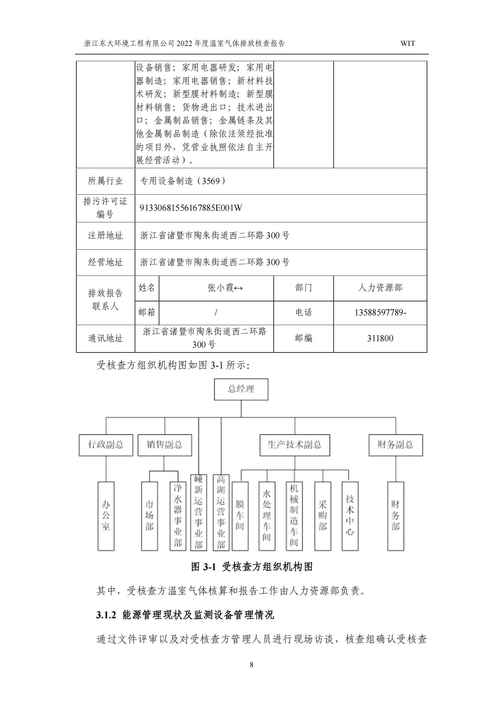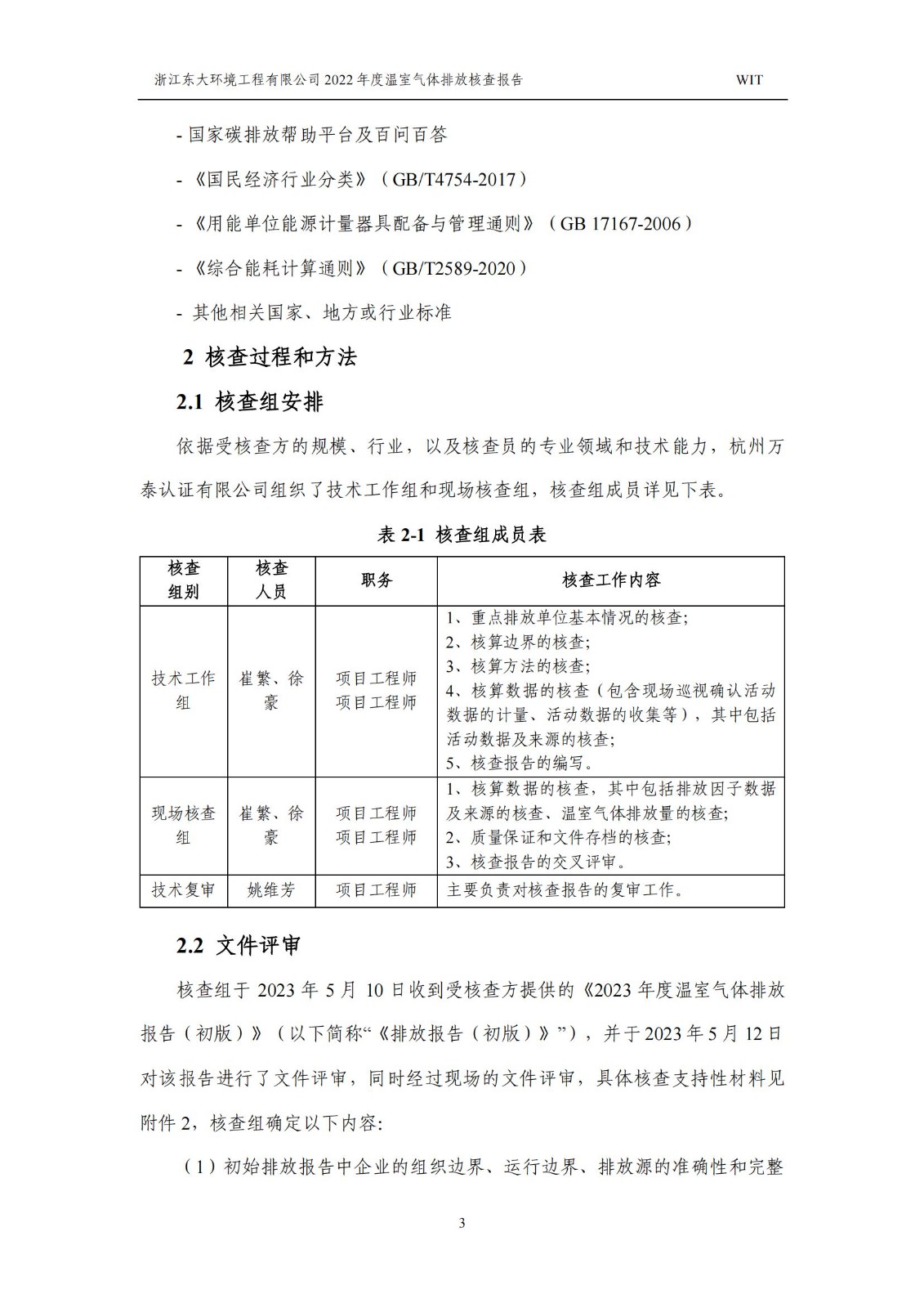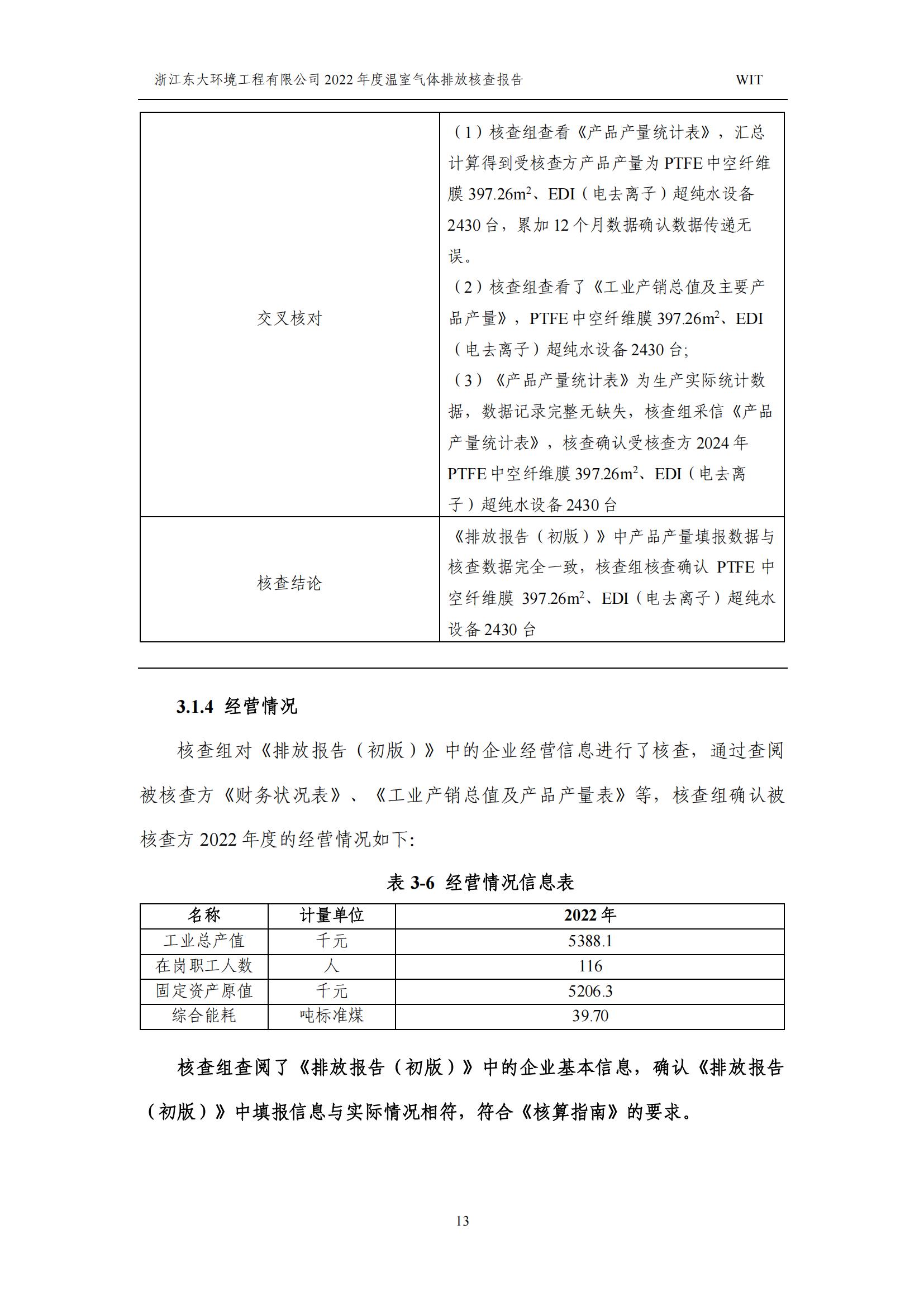 浙江東大環(huán)境工程有限公司2022年溫室氣體排放核查報告