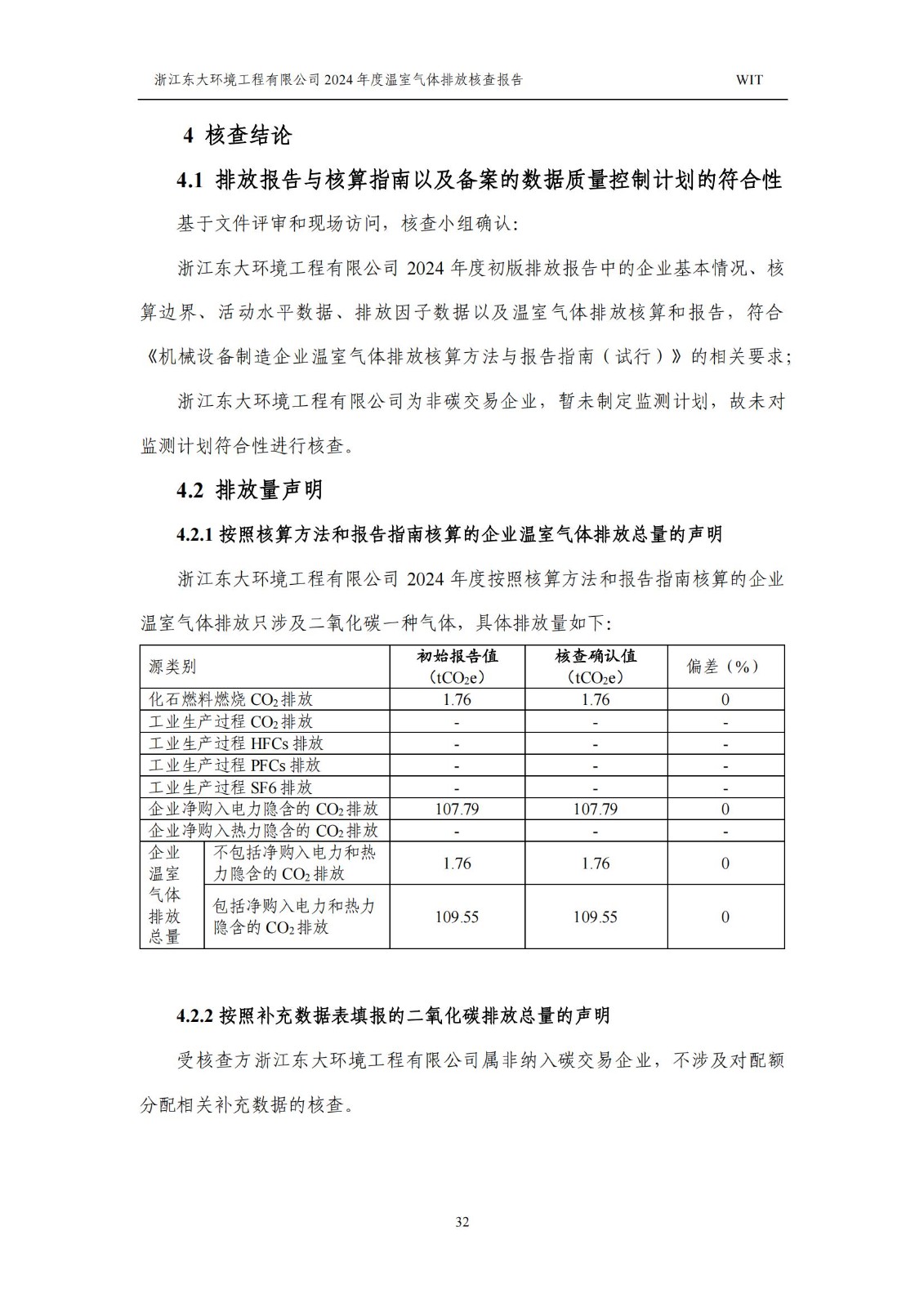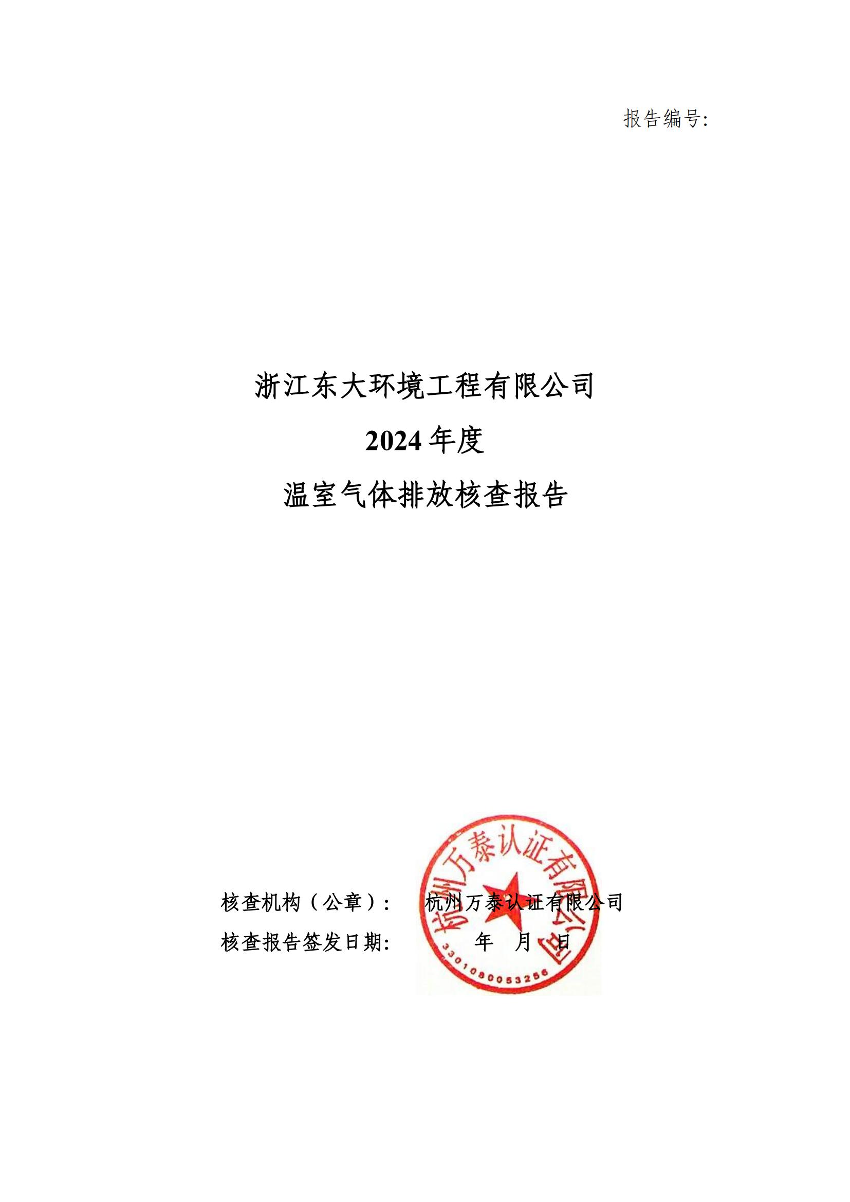 浙江東大環境工程有限公司2024年溫室氣體排放核查報告